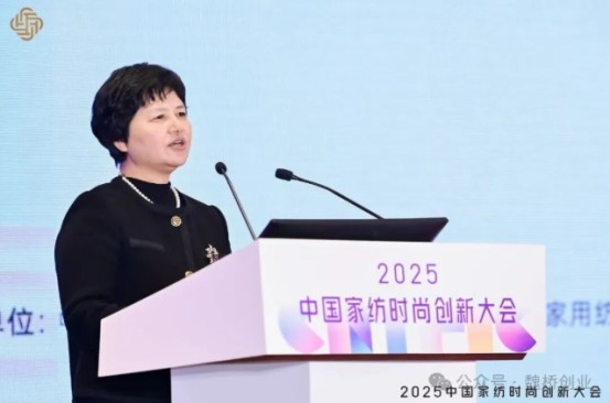 张红霞在致辞中代表滨州纺织行业协会和魏桥创业集团,向出席首届中国家纺时尚创新大会的领导和嘉宾表示热烈欢迎与衷心感谢。她指出,近年来滨州纺协在各级支持下推动滨州纺织产业向智能化、绿色化、融合化稳健高质量发展,通过依托高能级平台深化产学研合作、推进“生产换线、工序换器、机器换人”行动贯通全产业链智能化、践行绿色理念构建循环经济,为纺织现代化产业体系筑牢根基。她表示,将以党的二十届四中全会精神及国家“十五五”规划建议为指引,与行业同仁携手,以科技、数智、绿色赋能产业升级,共同推动纺织产业向更高价值攀升,为构建纺织现代化产业体系贡献更大力量。