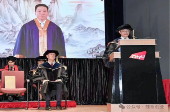 港城大校董会主席魏名成(明德)先生在致辞时表示:感谢张波荣誉院士一直以来为大学发展提出的宝贵见解及贡献,他以卓越的领导力、正直的品格和无私的奉献精神为社会贡献良多,是港城大社群以及社会的典范。他不单是一位极富远见的企业家,更是一位热心回馈社会的慈善家,除了在商界获得非凡成就外,更持续慷慨支持大学的策略性举措,以实际行动向社会各界传递,回馈社会是企业发展重要一环。张波荣誉院士所具备的责任感、追求卓越的精神、拥抱教育和创新的力量,都令我们有深刻的启迪。