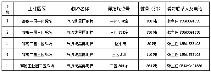 2、以上招标物品均须提前到邹平、滨州工业园货场看货,必须在合同规定的时间内将中标的物资清运完毕;进入工业园看货时必须遵守公司的规章制度,不准携带烟火,不准喝酒,否则后果自负!
